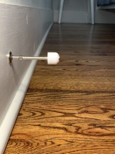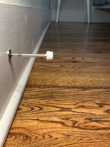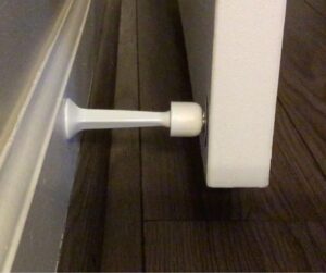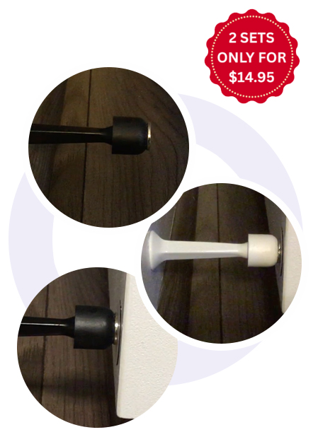 Magna Stop is a two-piece magnetic system that transforms your existing doorstop—no tools, no drilling, no bending—into a magnetic doorstop.